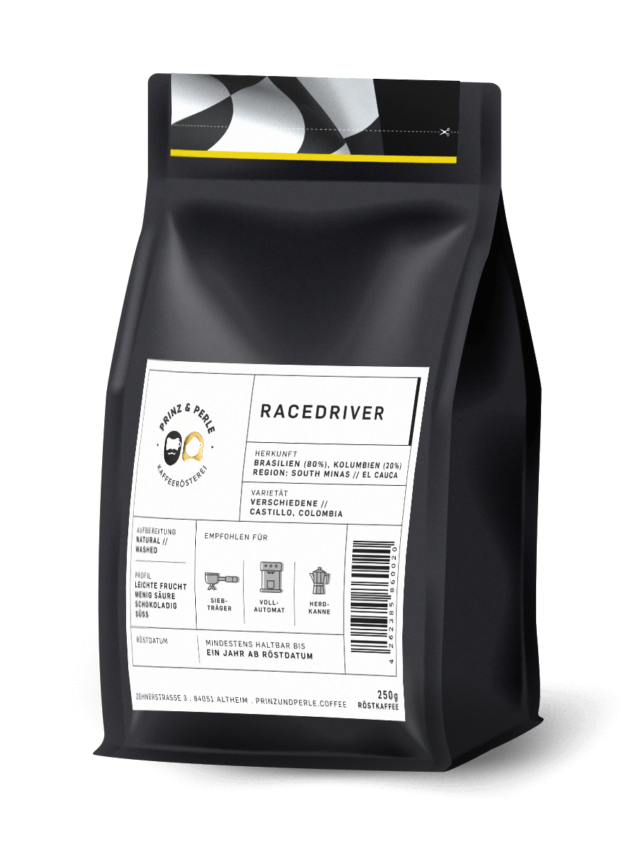 Wir durften für Alexander Woller (https://www.alexanderwoller.com), seines Zeichens Rennfahrer, eine eigene Röstung kreieren. Herausgekommen ist ein vollmundiger Blend. Kräftige Basis durch die brasilianischen Bohnen mit angenehmer Fruchtnote.